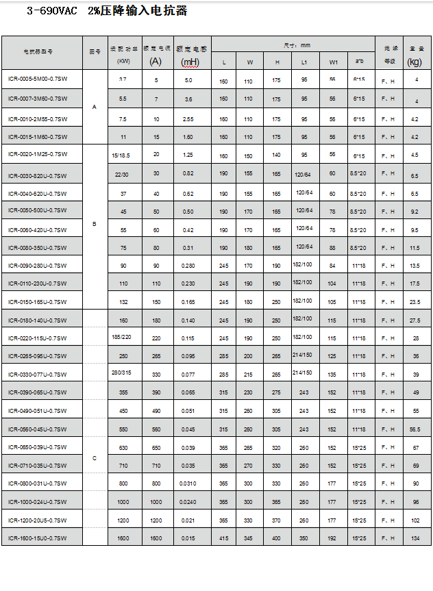 安裝在變頻器輸出端,用于限制變頻器與電機連接電纜的容性充電電流,鈍化變頻器輸出的PWM波的電壓上升率。電機電纜長度超過一定值時,建議在變頻器與電機之間插入一個電機電抗器用于補償在長導線時的電容再充電電流。此長度決定于變頻器的額定值以及電機電纜的類型。